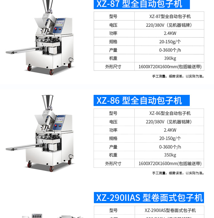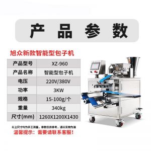 名稱XZ-960多功能包子機 電源220/380V 功率3kw 產量 尺寸1260×1200×1430mm 重量340kg 規格 其他