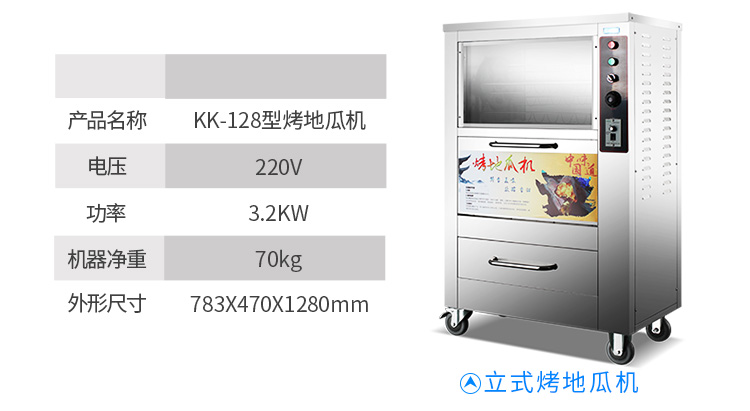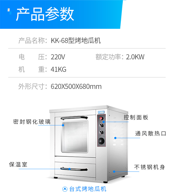 名稱KK-68型烤地瓜機 電源220V 功率2.0kw 產(chǎn)量 尺寸620×500×680mm 重量41kg 規(guī)格 其他