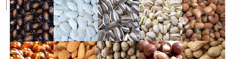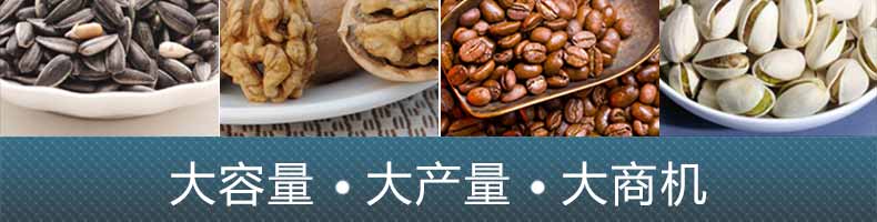 7.適合加工各種干果和堅果類,如;板栗、花生、瓜子、松籽、榛子、杏仁、菜籽、咖啡豆、紅棗、芝麻、、核桃、各種豆類、麥類、米類等。適用于在各大商場、超市、食品專賣店、連鎖店、街道小吃等人口密集區等處定點經營和加工。是您創業致富的好幫手。