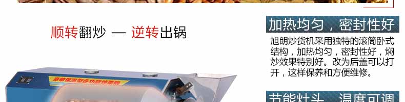 8.炒貨機結構合理,操作簡單,熱效率高,所炒制食物非常均勻、口感良好!