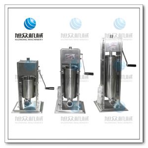 旭眾牌手搖灌腸機接觸食物的部位全部采用優(yōu)質不鋼筋材料,衛(wèi)生、安全;立式設計,外形美觀、大方。料筒折裝快速,清洗方便;全新的齒輪系統(tǒng),使送料推力,快速、輕便地釋放提升推進活塞,工作效率高;此灌腸機是家用制作香腸或食堂、餐館、酒店專業(yè)制作香腸的理想產(chǎn)品。