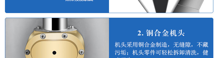 旭眾牌SZ-200灌腸機使用敞開式不銹鋼料斗,適用于連續添加物料;與灌裝手接觸部件全部采用優質不銹鋼制作以防生銹;該機自動化程度高,技術先進、性能穩定、操作簡便、工作效率高,具有不破壞物料成份,保質、保鮮等特點。