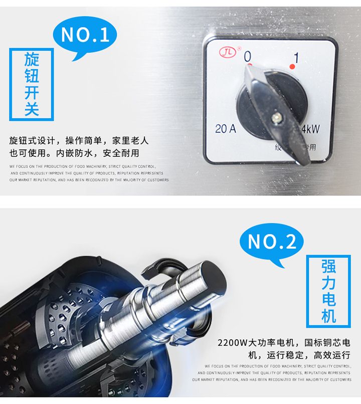 XZL-22A絞肉機吸取同行之優(yōu)點,改進新型絞肉切肉機械,它能切豬肉、羊肉、牛肉、魚及其它各種肉類、所切肉片厚度適中切片效率高,是餐廳、賓館、酒樓、單位食堂等絞肉切肉的理想機械,該機外形獨特,操作方便,維修簡單,工作效率高,在同行業(yè)中處領(lǐng)先地位,與食物接觸部分均采用不銹鋼制造符合食品衛(wèi)生標(biāo)準(zhǔn)。