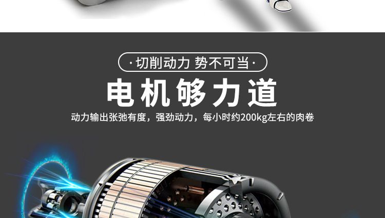 4.自動化程度高,肉片切制,厚度調(diào)節(jié)。肉卷輸送,自動停機。均可一鍵完成,省工省時