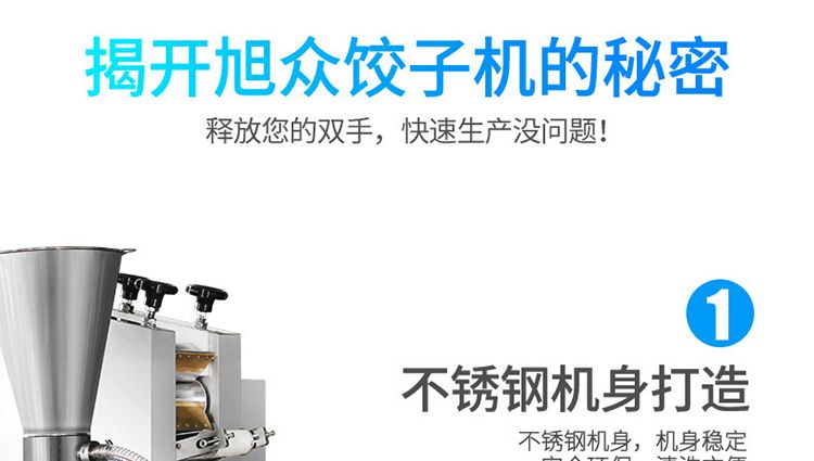 旭眾牌JGB-180型仿手工餃子機是我公司開發(fā)生產(chǎn)的先進的自動餃子生產(chǎn)設備。設備包括主動壓皮部分、自動供餡部分、自動包合成型部分、自動成品輸送部分,并且只要更換模具,就可制鍋貼等食品。