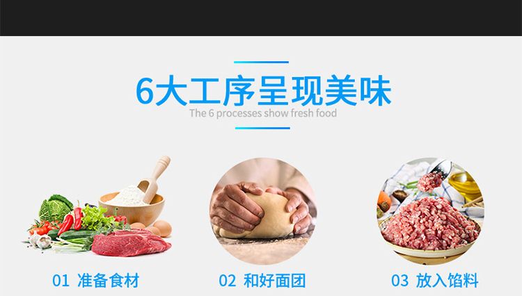 ?采用多道壓面輥壓面,壓面效果優(yōu)異,壓出的面皮筋道,進一步提高所包出的餃子口感。