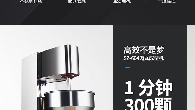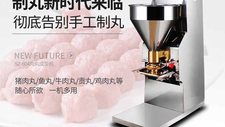 SZ-604肉丸成型機,肉丸成型機采用不銹鋼材質,丸子直徑可達15-35mm,可以制作各類爽脆,有韌性、有彈性的豬肉丸、魚丸、牛肉丸、貢丸、雞肉丸等
