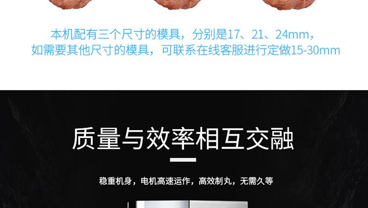 用于制作豬肉丸、魚肉丸、牛肉丸、雞肉丸、貢丸等各種肉丸。