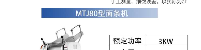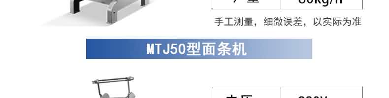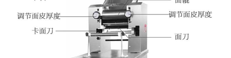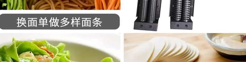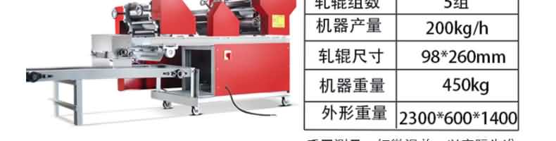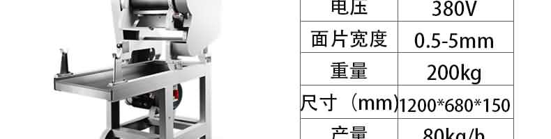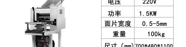 名稱RQJ-60型豪華壓面面條機 電源220/380V 功率1.5/2.2kw 產量60-80kg/h 尺寸1000*510*1180mm 重量111kg 規格厚度0.6-20mm 其他