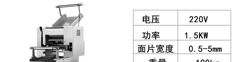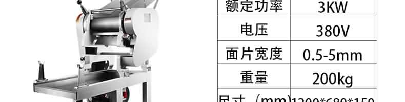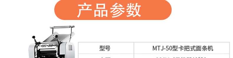 名稱MTJ-50面條機(卡把式) 電源 功率1.5kw 產量50kg/h 尺寸700×450×1100mm 重量95kg 規格 其他