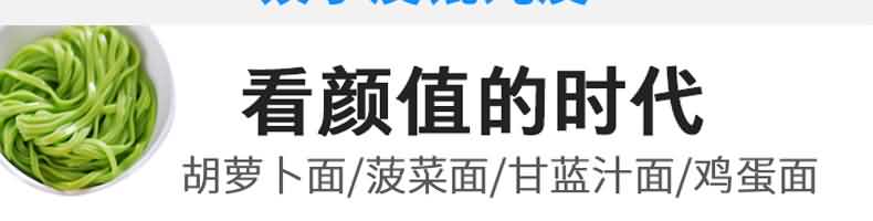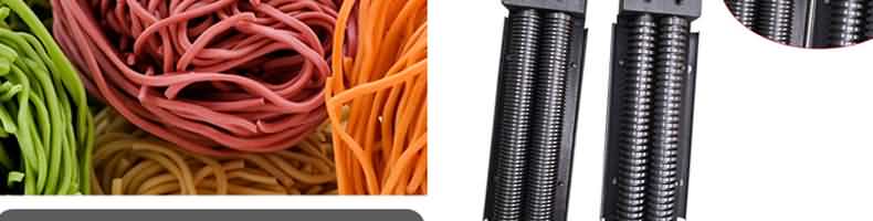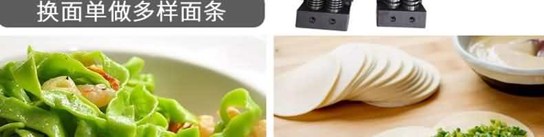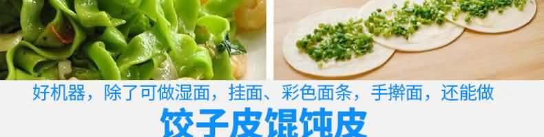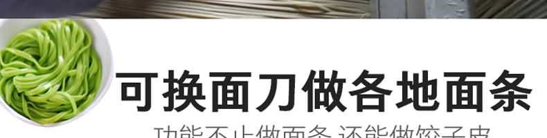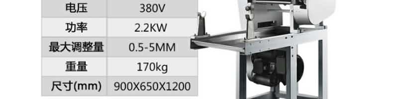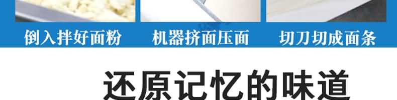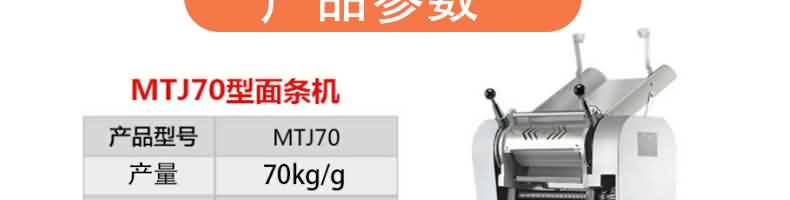 名稱MTJ-70型面條機(卡把式) 電源 功率2.2kw 產量70kg/h 尺寸900×650×1200mm 重量170kg 規格面片寬度280mm面片厚度0.5-5mm 其他