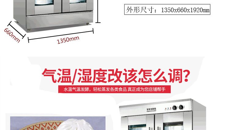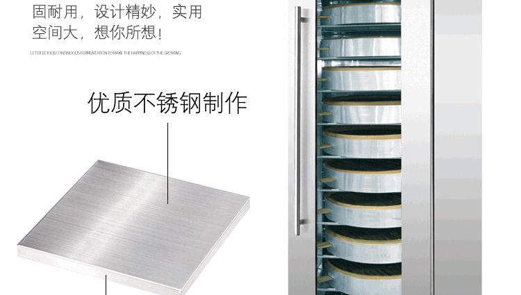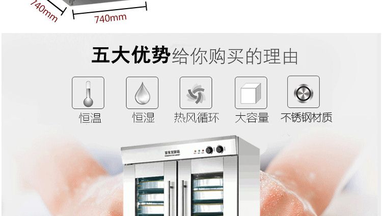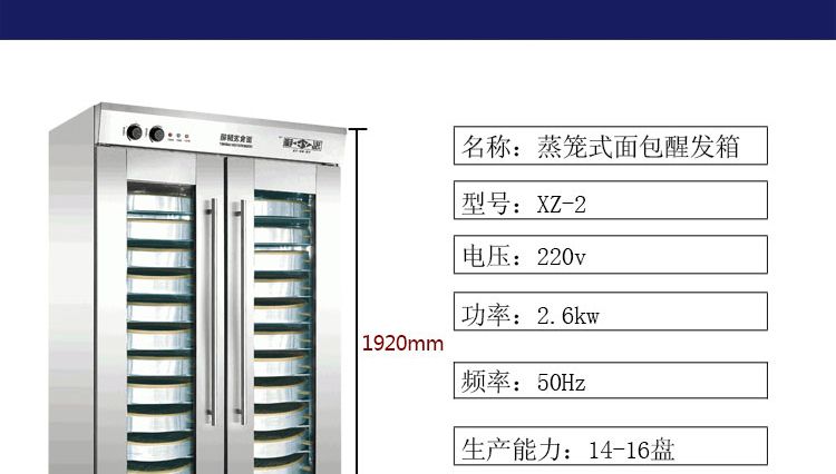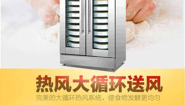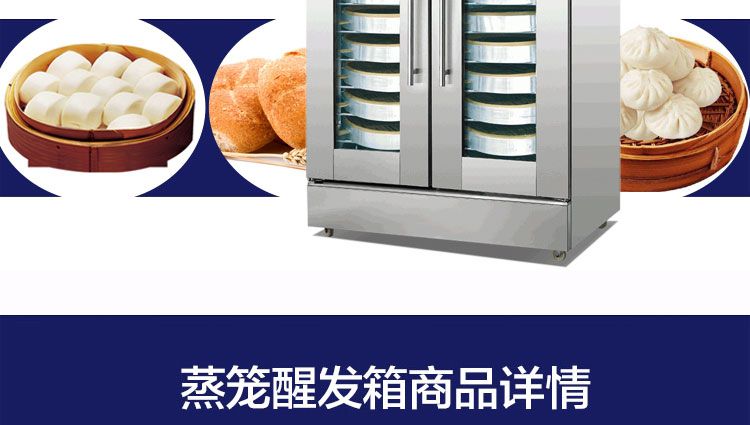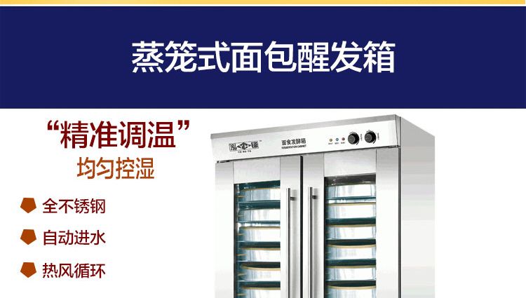 旭眾蒸籠醒發箱采用全不銹鋼制成,利用電熱管通過自動調節使箱內熱水加熱,產生大量水蒸氣。使箱內濕度達80-85%,可將溫度自動控制在35-40℃之間,形成適合發酵環境,并增設加溫干燒管及發熱片,保持箱內溫度以及把水珠加熱霧化,使發酵過程達到很好效果,是糕點生產配套的理想設備。