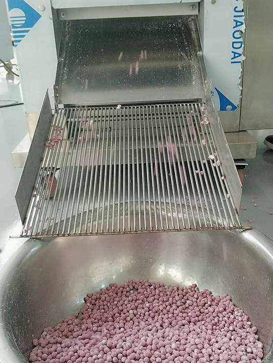 合成的面團可通過旭眾無餡湯圓機分割搓圓成一個個小丸子,一小時可生產0~120kg,規格6-22mm可定制(注:一臺機器只有一種規格,所以一定要確定好自己要的規格)
